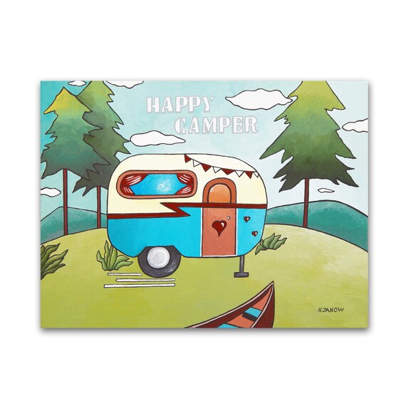 Happy Camper Original Painting On Canvas Camper Wall Decor Etsy