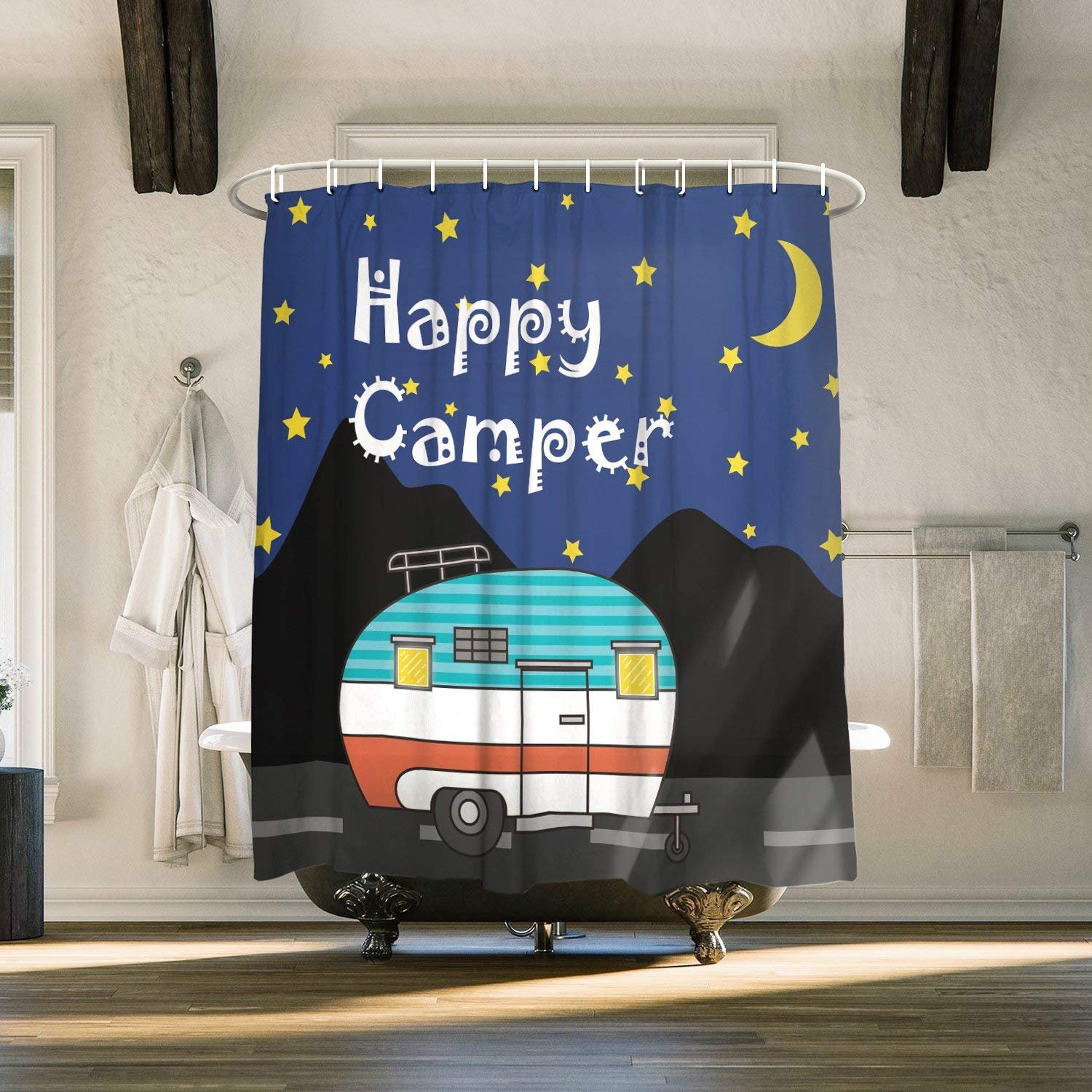 Retro Camping Shower Curtain Vintage Travel Trailer Decor Bathroom