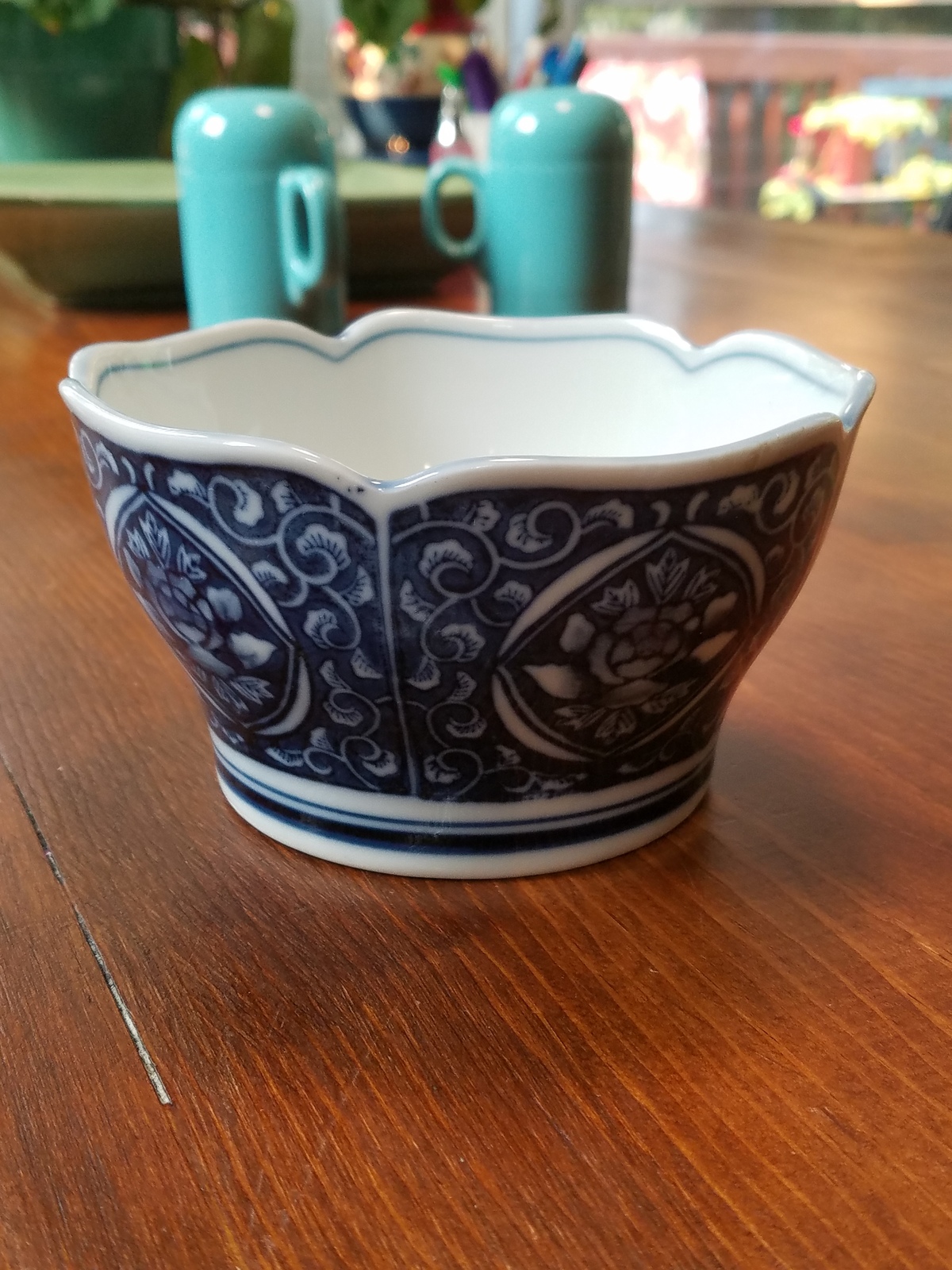 Vintage Blue And White Decorative Bowl With Wood Stand Etsy