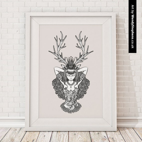 Deer Antlers Art Print Wiccan Decor Gothic Wall Decor Etsy