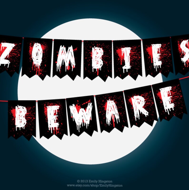 Zombie Party Decor Halloween Garland Zombies Beware Sign The Etsy