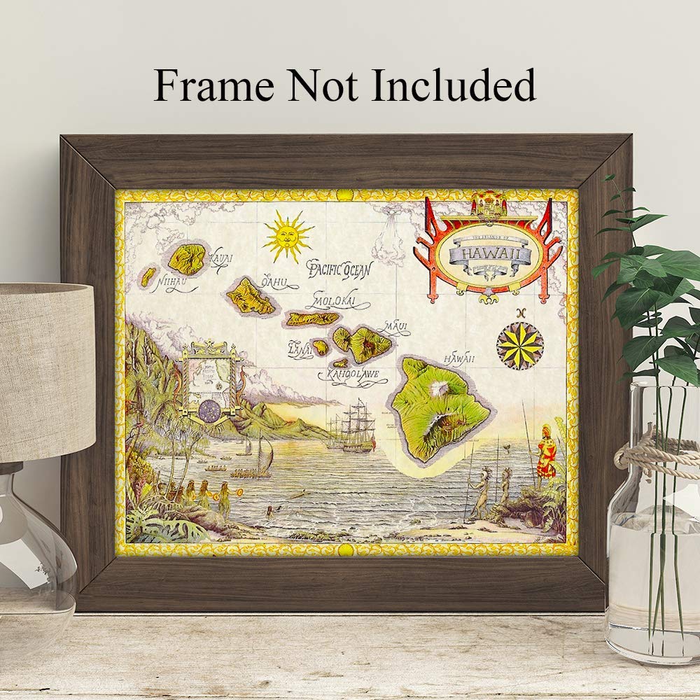 Amazon Com Vintage Map Of Hawaii Wall Art Print Perfect