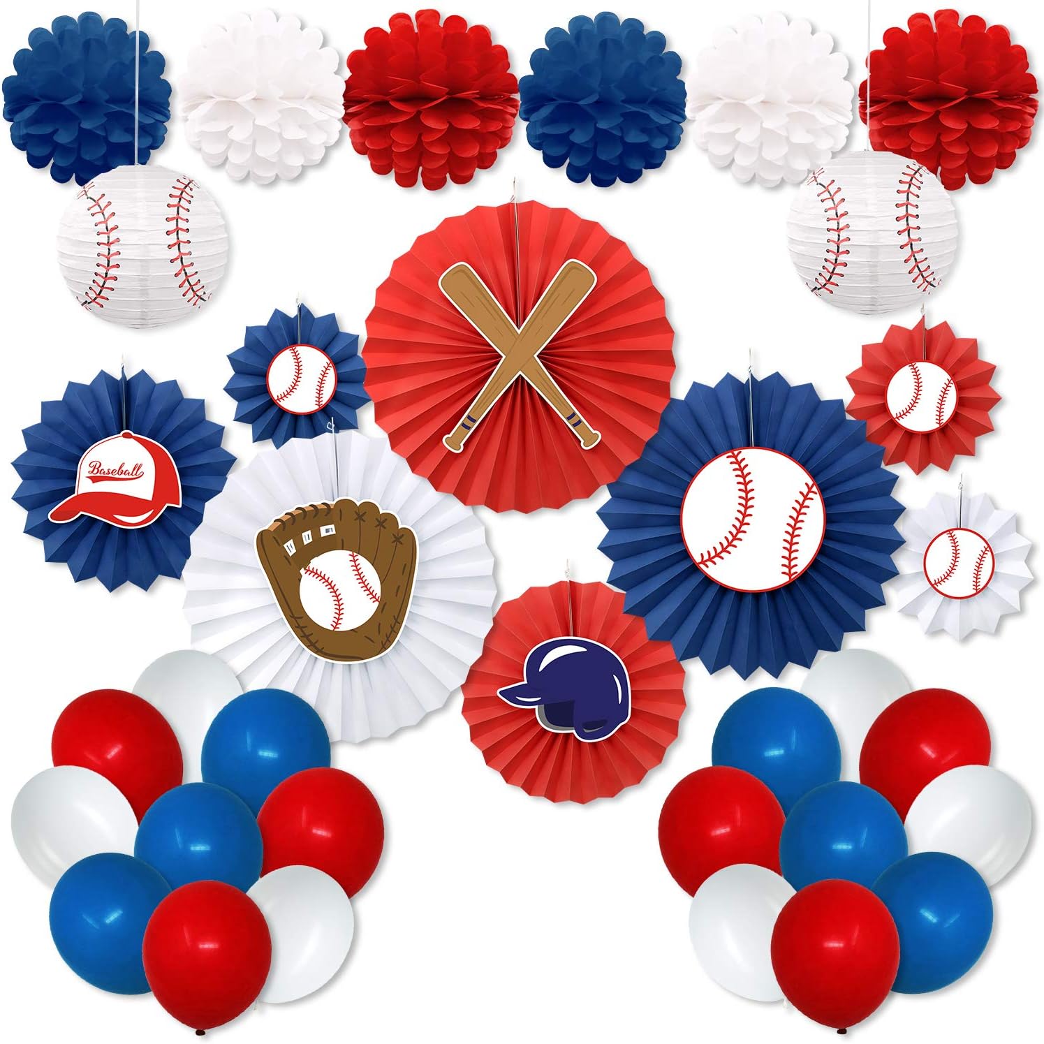 Baseball party decorations. Baseball fans will love these great ideas for ways to incorporate baseball into a birthday party team party baby shower or other party. When i was looking for these ideas i made sure to find things that are easy to do inexpensive and that you could make yourself. From tableware to party decor each piece of this theme is a no doubt home run from the balloons to the party favors.