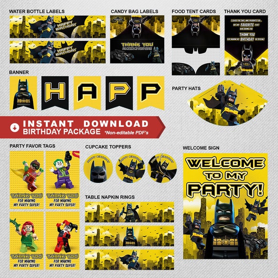 Lego Batman Birthday Party Package Lego Batman Party Etsy
