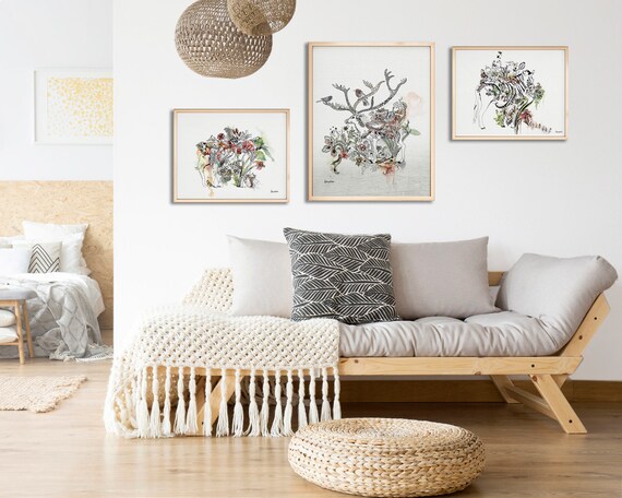 Boho Prints Wall Art Set Boho Home Decor Animals Paintings Etsy