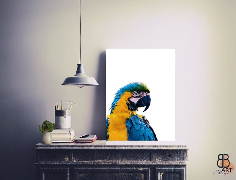 Tropical Parrot Art Blue Macaw Caribbean Decor Tropical Etsy