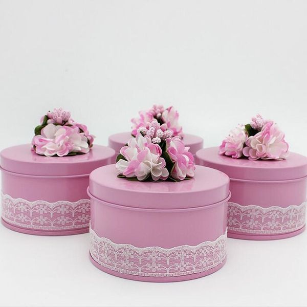 Unique Flower Decor Wedding Round Iron Tinplate Candy Box