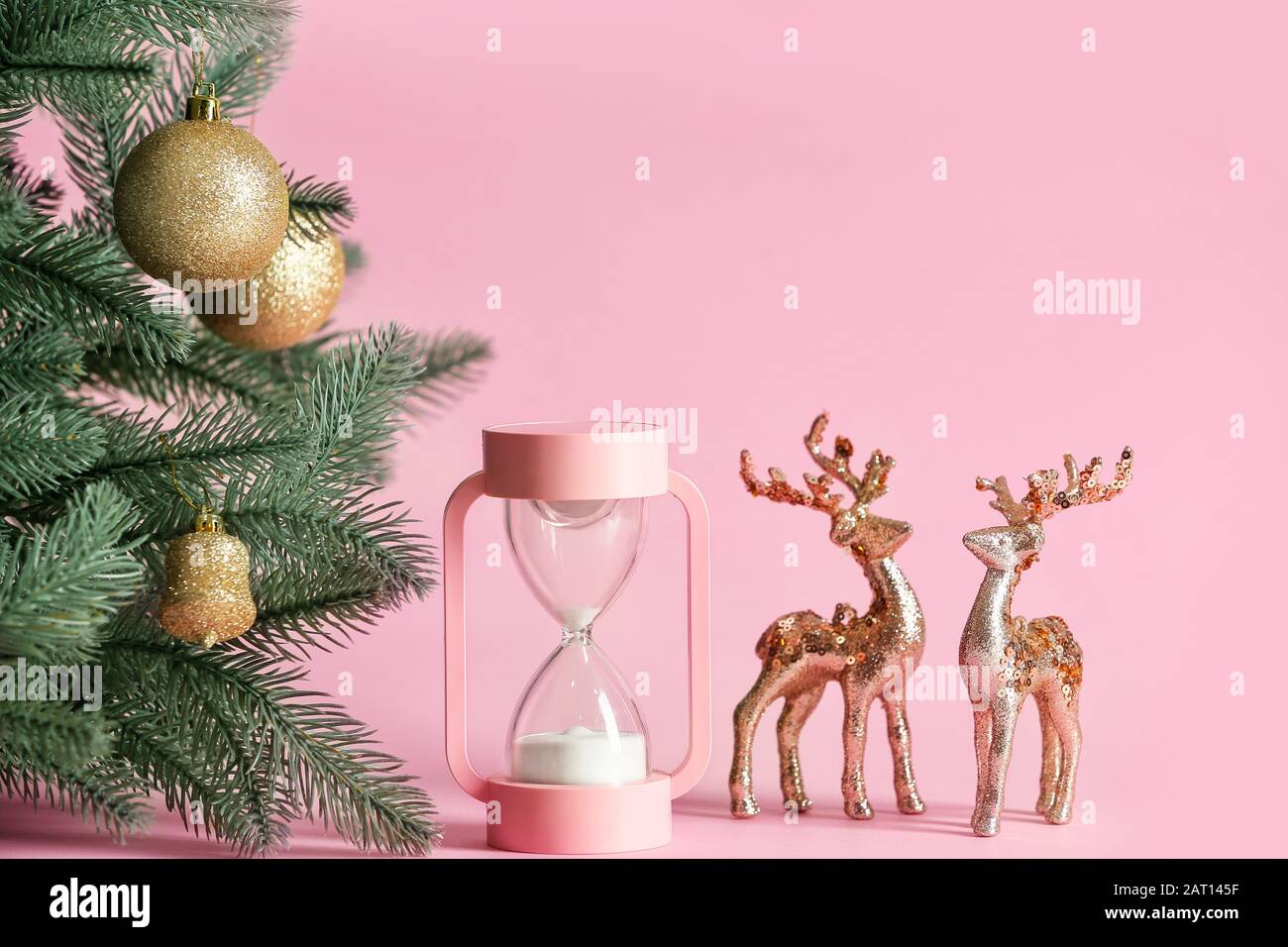 Hourglass Fir Tree And Decor On Color Background Christmas