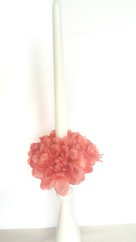 Taper Candle Ring Flower Candle Ring Coral Color Home Etsy