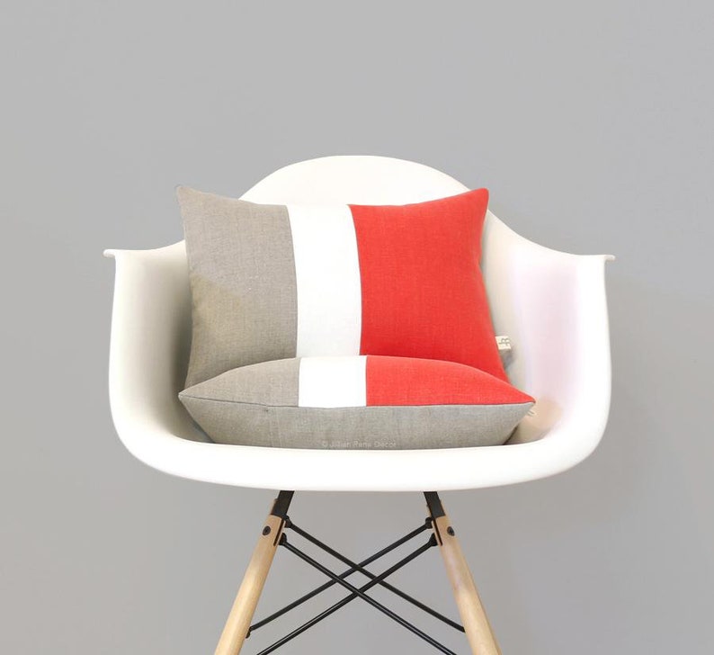 Coral Color Block Pillow Set Of 2 Modern Home Decor By Etsy