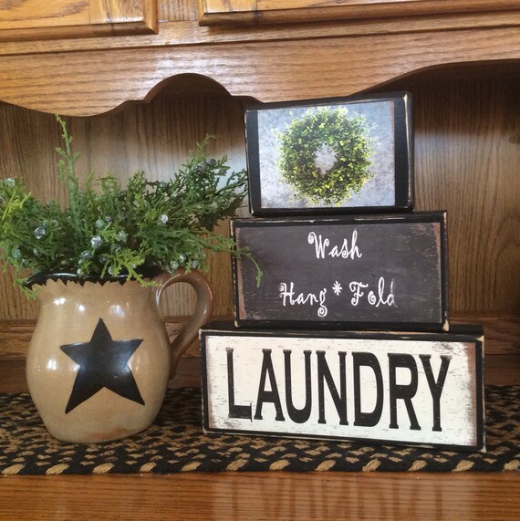 Primitive Laundry Room Decor Country Decor Block Set Etsy