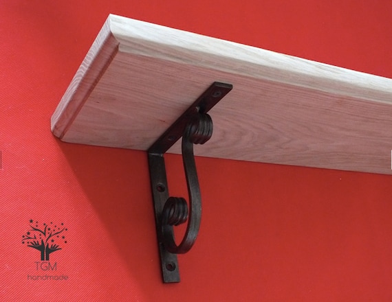 2 8cm X 18cm Solid Oak Shelf With Metal Decorative Bracket Etsy
