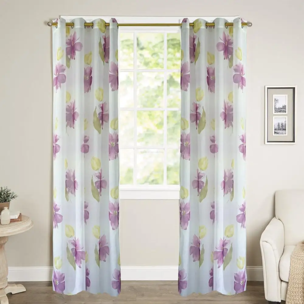 Living Room Printed Butterfly Flowers Decorative Curtains For