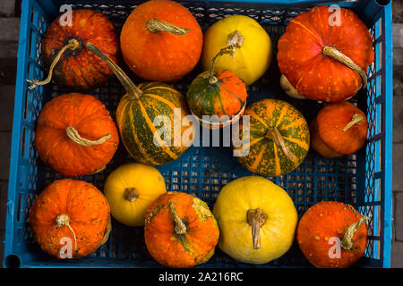 Decorative Pumpkins For Sale At The Greengrocer Shop Stock Photo