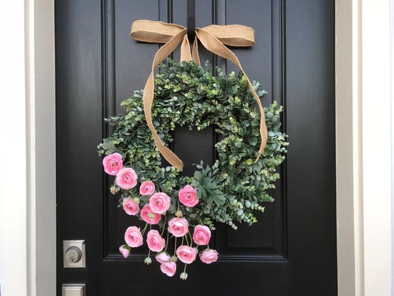 Eucalyptus Wreath Pink Ranunculus Wreaths Decorative Etsy