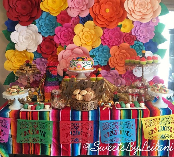 Fiesta Dessert Table Decorations Amor Papel Picado Banners Etsy