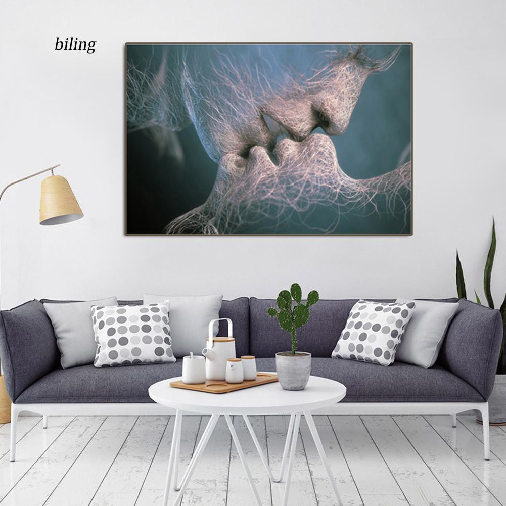 Blng Abstract Wall Art Canvas Painting Love Kiss Picture Bedroom