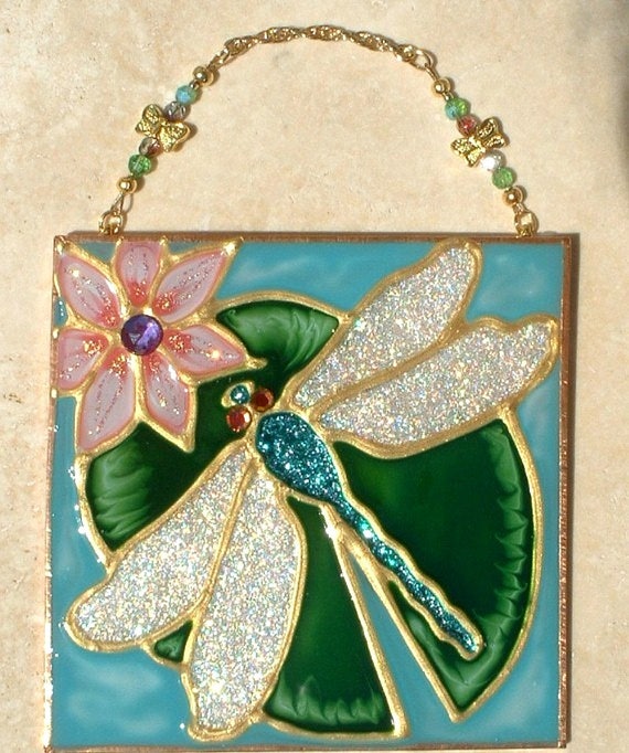 Dragonfly Suncatcher Stained Glass Window Hanging Panel Etsy