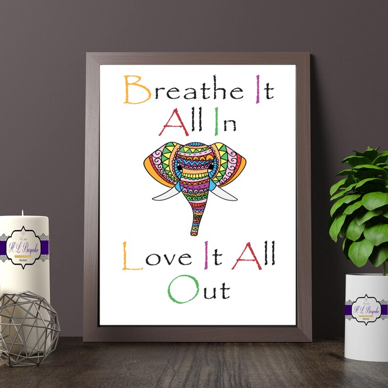 Colourful Elephant Room Decor Just Breathe Print Colourful Etsy