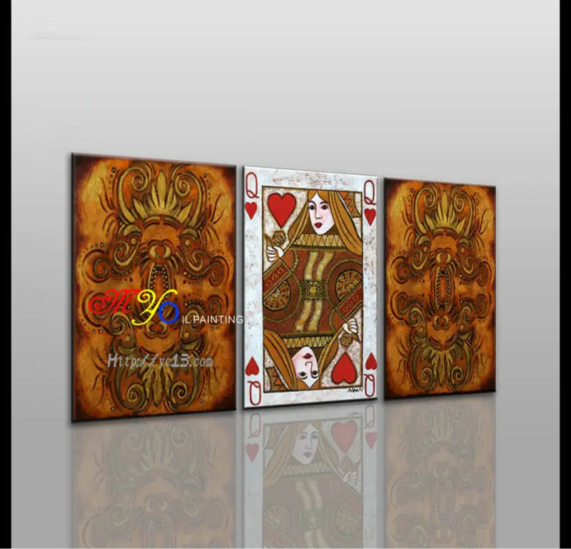 Playing Card 3 Panel Oil Painting On Canvas Handmade Home Decor