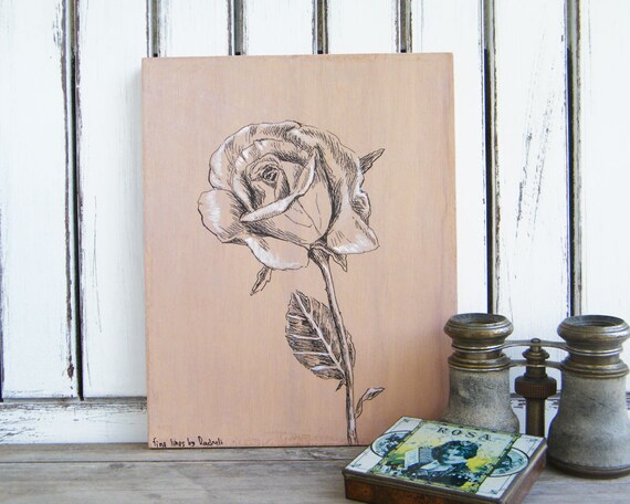 Rose Print Botanical Art Rustic Wall Decor Print On Wood Etsy