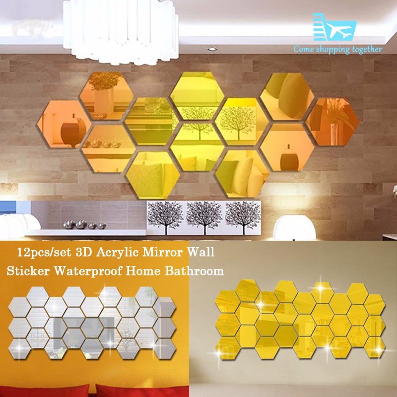 Hexagonal 3d Mirrors Wall Stickers Home Decor Mirror Wall Sticker
