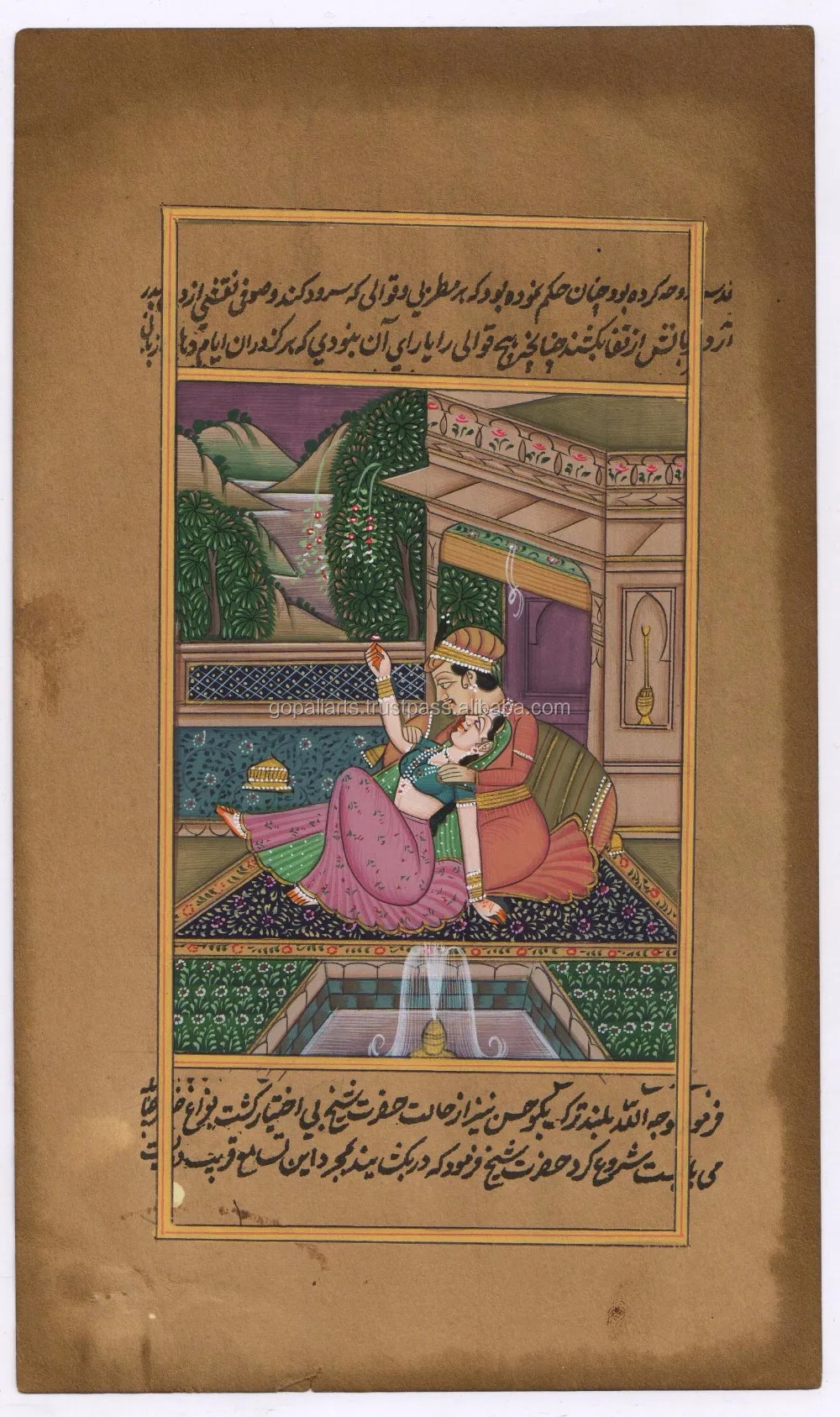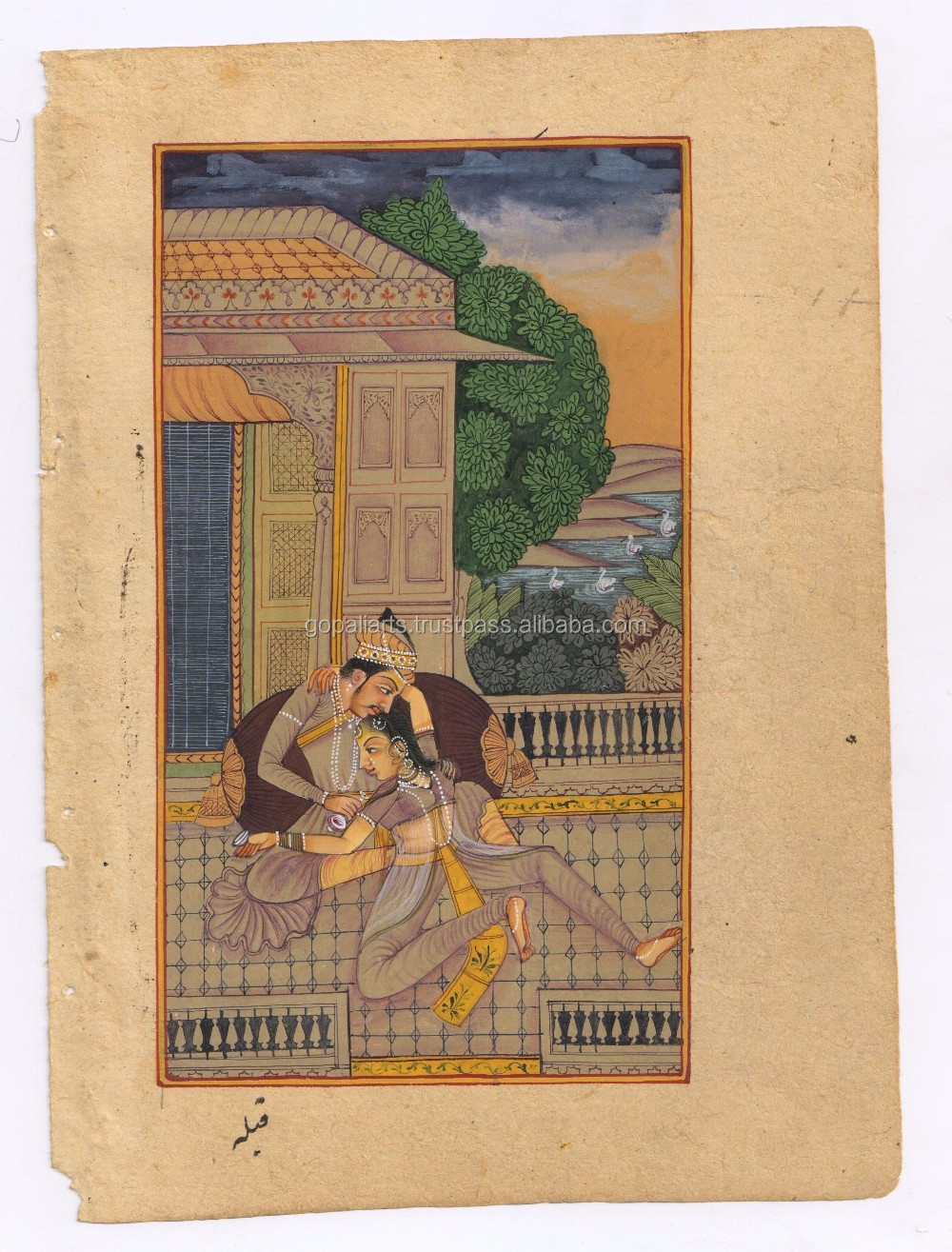 Indian Mughal King Queen Harem Paper Painting Water Color Handmade