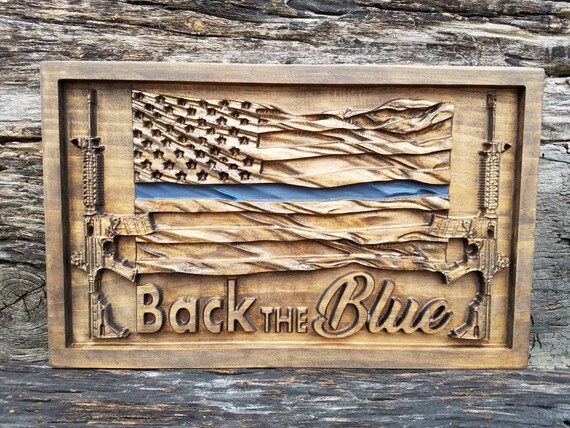 Back The Blue Wooden Sign Thin Blue Line Decor Law Enforcement Etsy