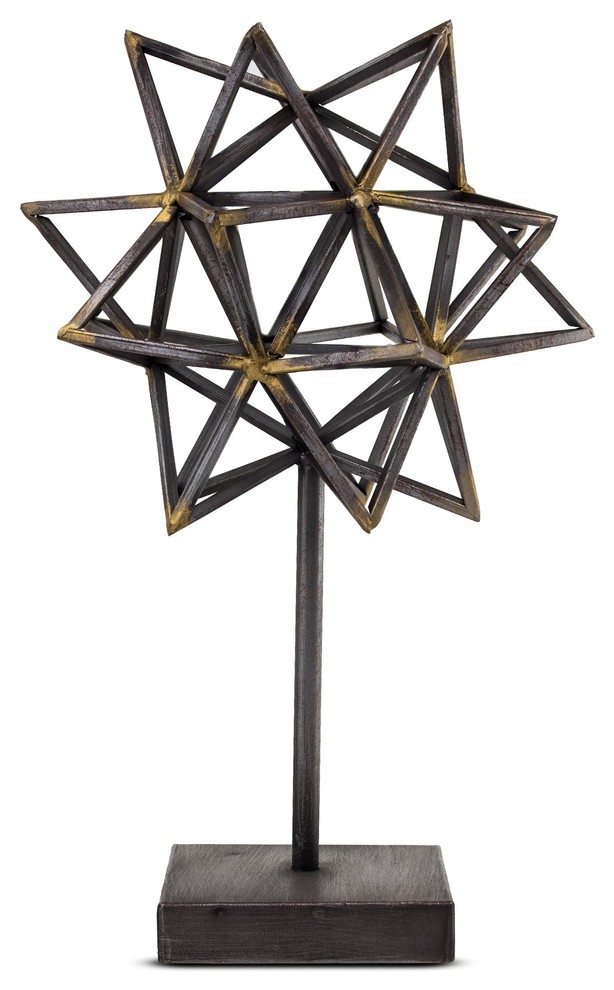 Geometric Metal Star Figurine On Stand Contemporary Decorative