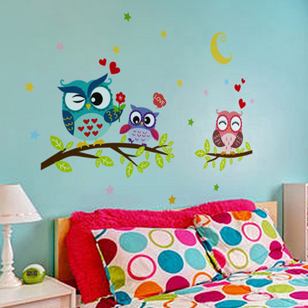 Removable Waterproof Cartoon Owl Wall Stickers Children Kids Diy