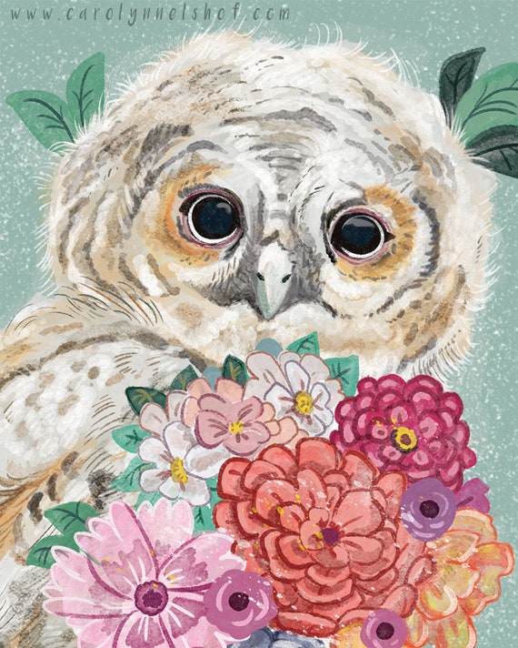 Flower Owl L Owl Print L Owl Art L Bedroom Decor L Nursery Etsy