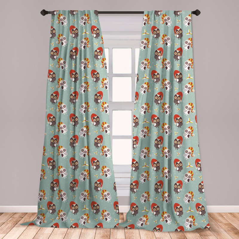 East Urban Home Ambesonne Christmas Curtains Owls In Hats Ready