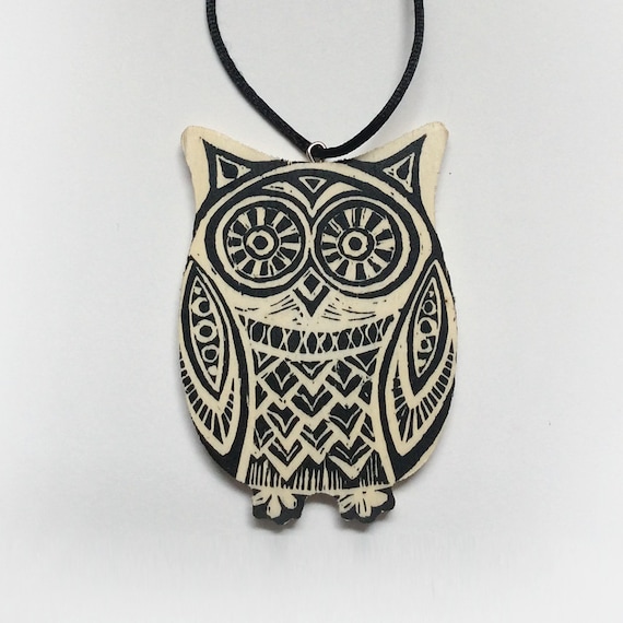 Hand Printed Owl Decoration Wooden Linocut Owl Hand Printed Etsy