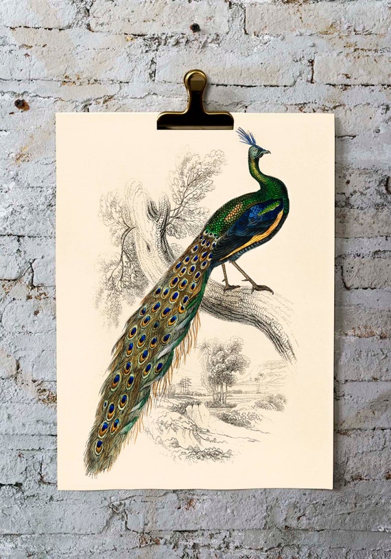 Peacock Wall Art Print Bird Prints Peacock Wall Art Vintage Etsy