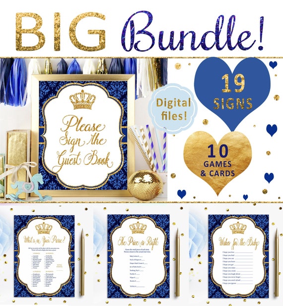 Royal Prince Baby Shower Decorations Games Signs Big Bundle Etsy