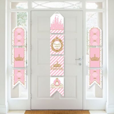 Little Princess Crown Hanging Vertical Paper Door Banners Pink