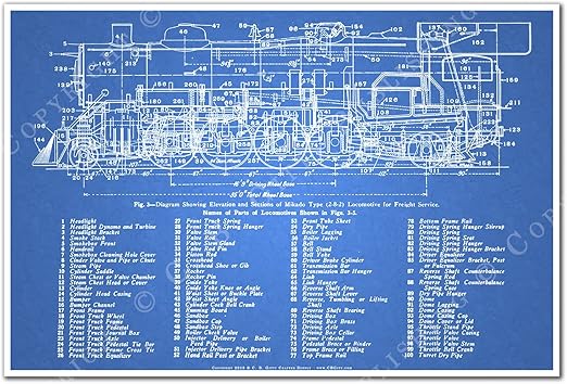 Amazon Com C B Gitty 2 8 2 Mikado Steam Locomotive Blueprint