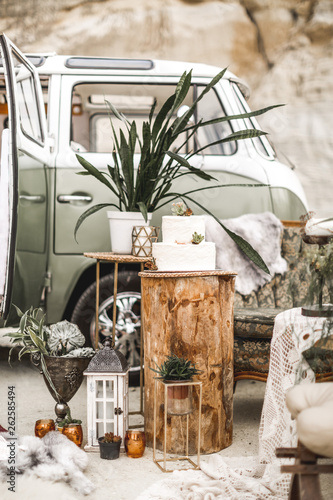 Wedding Decorations Table Rustic Style Wooden Stock Photo Edit