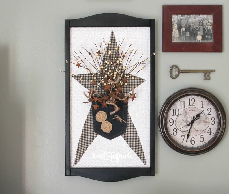 Primitive Rustic Star Decor Framed Star Wall Decor Farmhouse Etsy