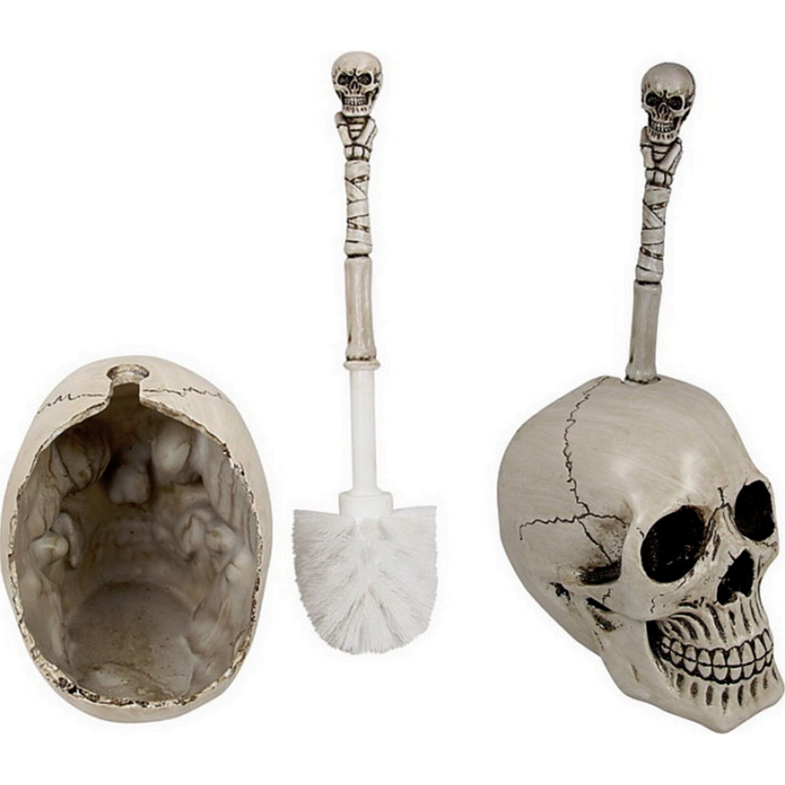 Skull Toilet Bowl Brush Set Bath Room Accessory Holder Undead