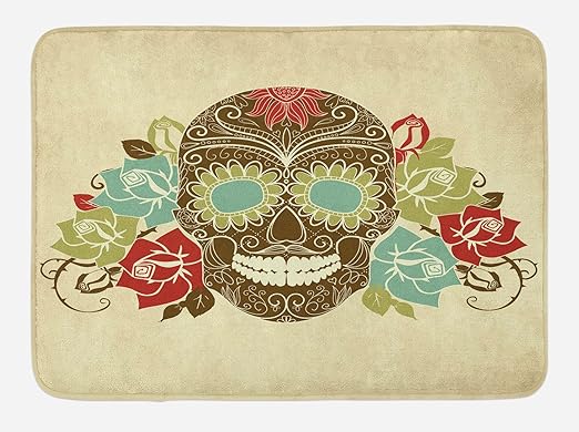 Amazon Com Ambesonne Sugar Skull Bath Mat Skull And Roses