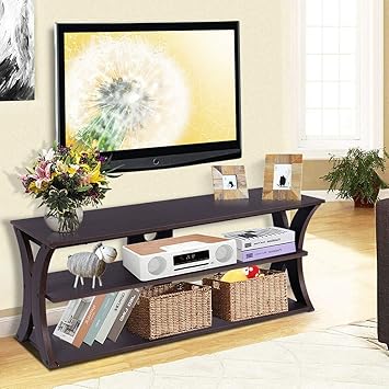 Amazon Com 3 Tier Tv Stand Decor Modern Wood Flat Screen Holder