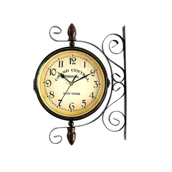 Fityle Vintage Outdoor Double Sided Wall Mount Station Clock Home