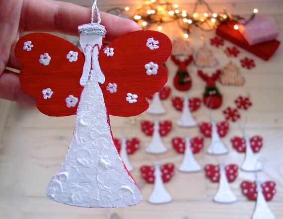 Home Decor White Angel Red Reindeer Wood Ornament For Home Etsy