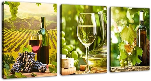Amazon Com Kitchen Canvas Art Grapes Wine Bottle Pictures For
