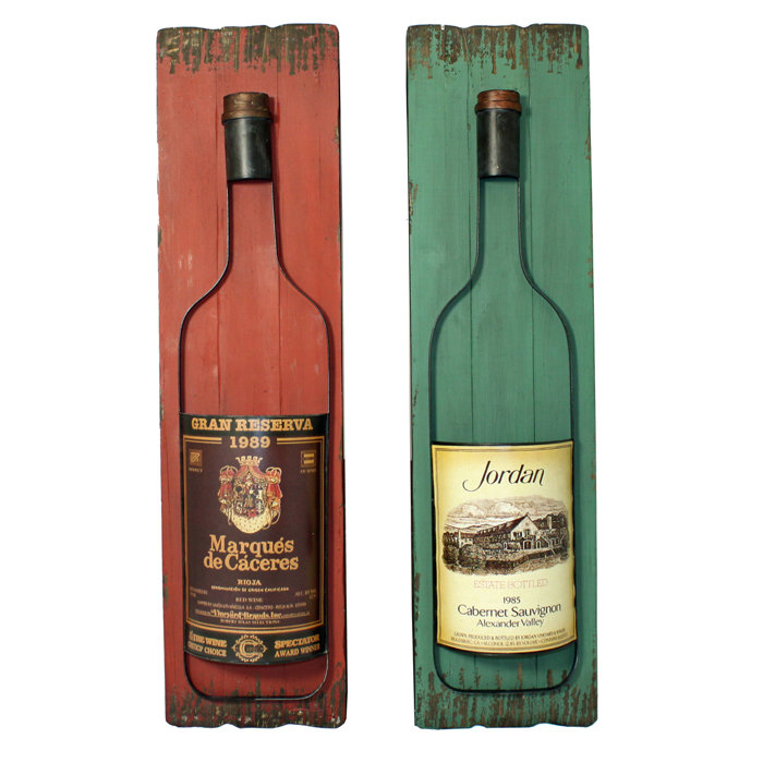 Wall Decoration With Wine Bottle Antique Style Panel Set Of 2