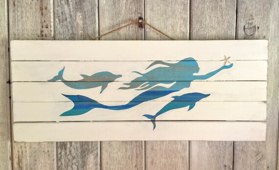 Wooden Mermaid And Dolphin Sign Wood Mermaid Decor Mermaid Etsy