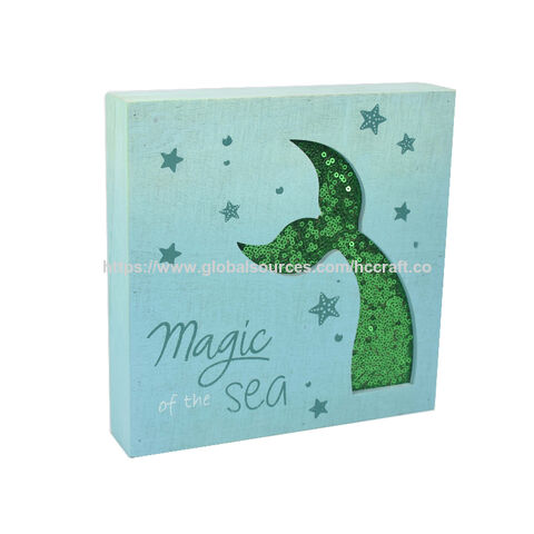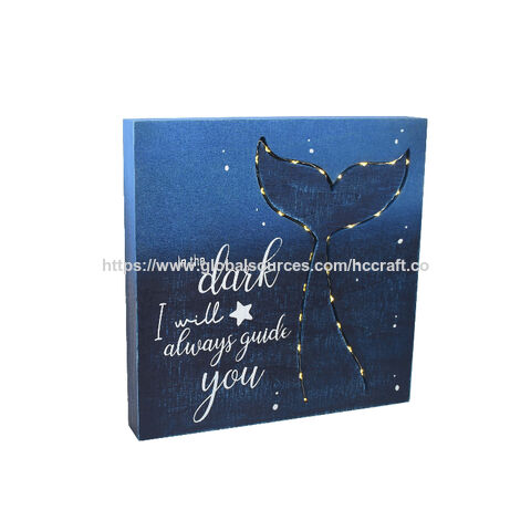 China Exclusive Design Mermaid Teel Led Wooden Framed Hanging For