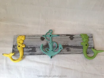 Cast Metal Wood Mermaid Anchor Wall Mounted Hook For Hanging