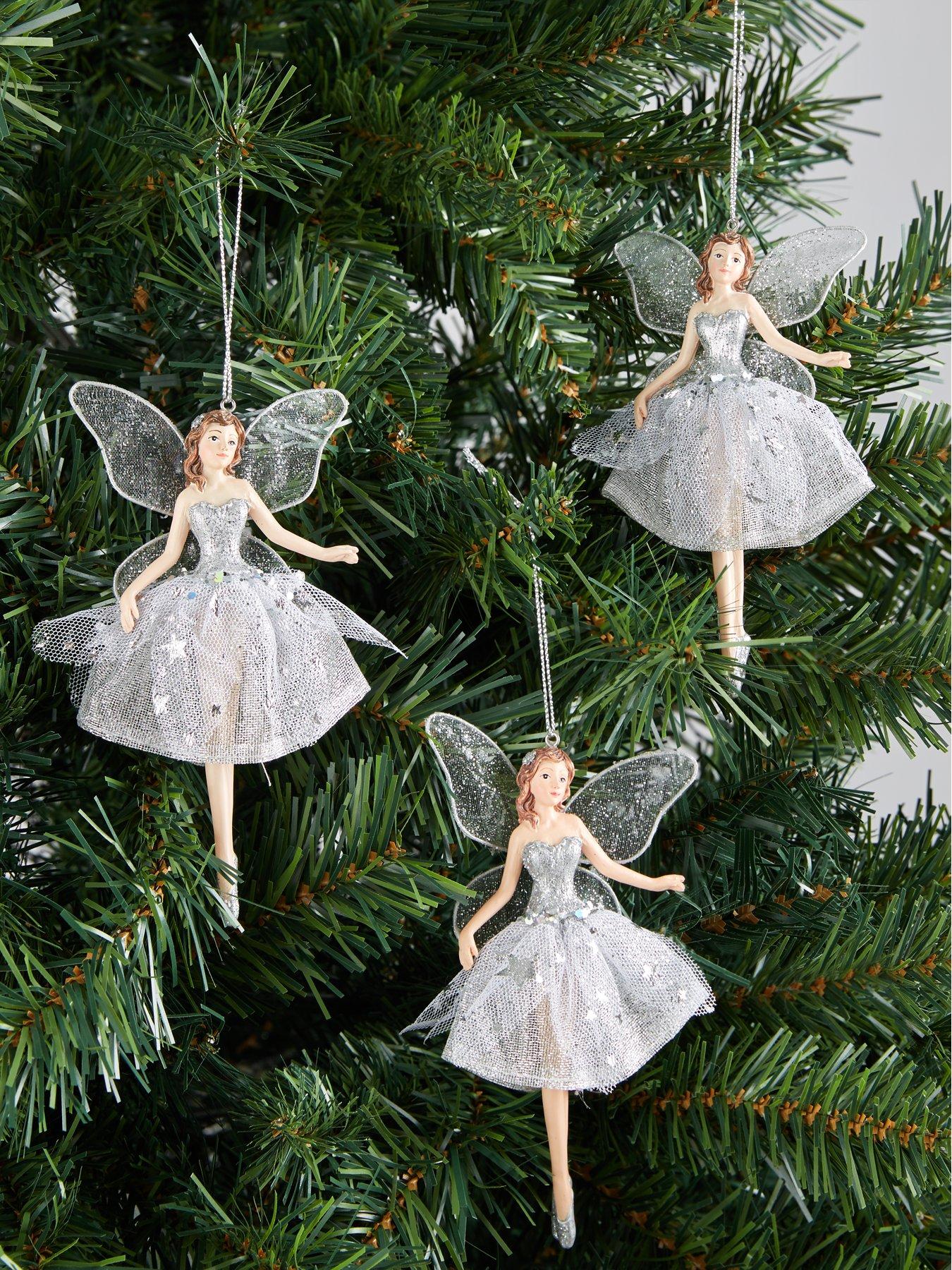 Silver Fairy Hanging Christmas Tree Decorations 3 Pack